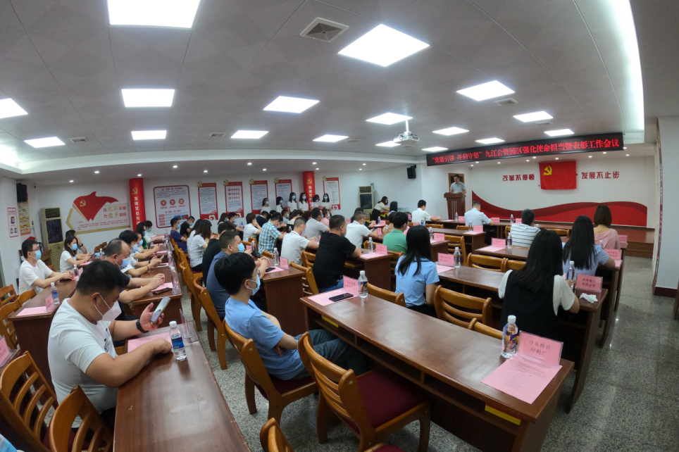 2022年6月7日(星期二)上午8:45,九江公资园区于九江公资大楼三楼大会议室召开了“党建引领,并肩守望”强化使命担当暨表彰工作会议,九江镇副镇长黄健同志作园区防疫工作总结,由镇党委委员王若辉同志、镇副镇长黄健同志分批对参与公资园区大型核酸检测及防疫工作的党支部、企业或个人进行表彰。